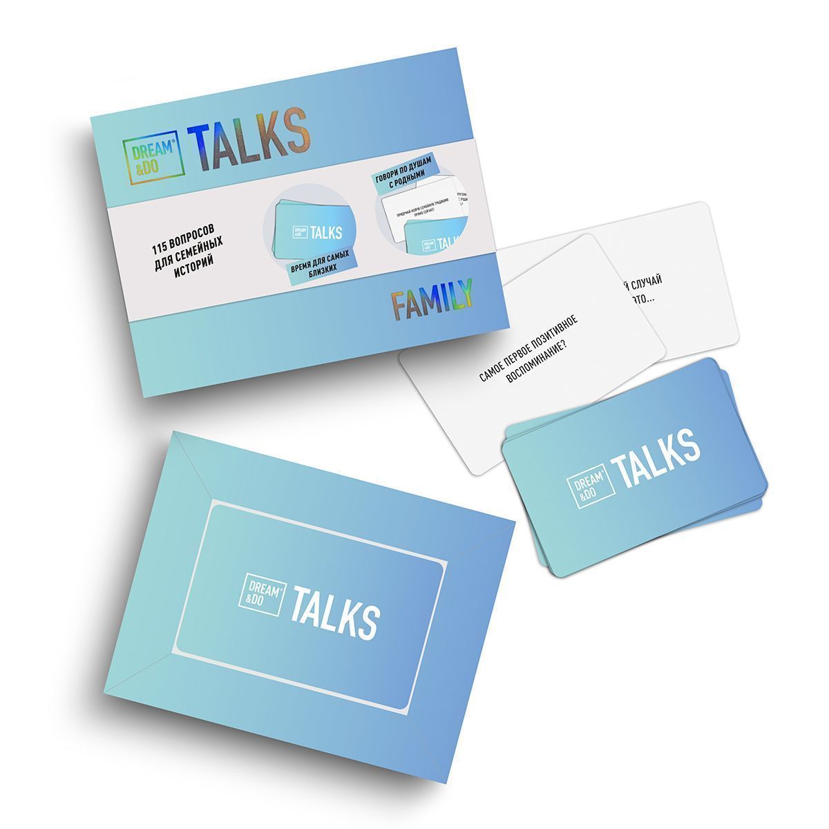 Набір DREAM&DO Talks Family об'єднує 115 карток-питань про дитинство, куменді історії, відносини в родині та взаємну підтримку.