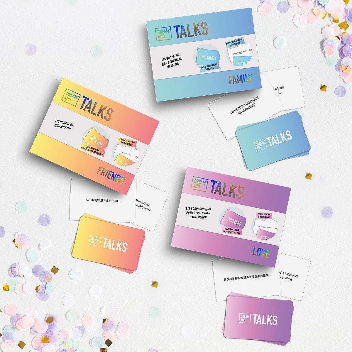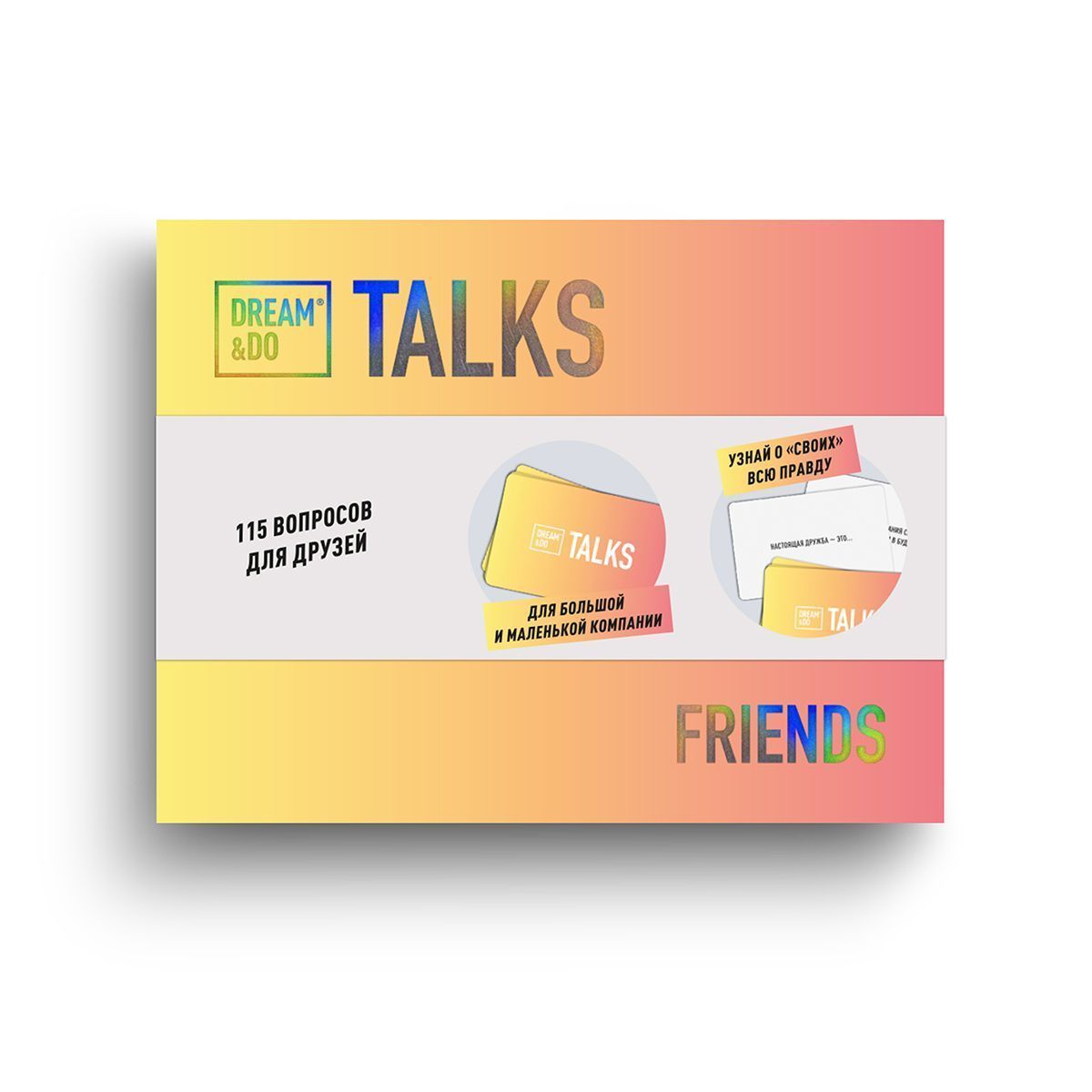 Набір DREAM&DO Talks Friends об'єднує 115 карток-питань про спосіб життя, захоплення, світогляд, саморозвиток, кар'єру.
